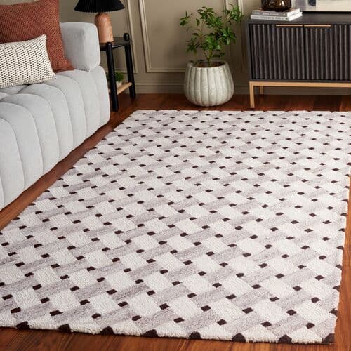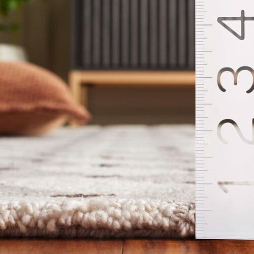 Elevate your living space with our 5'0" x 8'0" hand-tufted rug, crafted in India. The contemporary design in subtle ivory and brown tones adds a touch of elegance to any room. With a medium rectangle shape and a sleek 3/8 inch height, this rug is both stylish and functional. The unique blend of materials includes 55 percent wool, 10 percent viscose, 25 percent nylon, and 10 percent cotton, ensuring a soft texture underfoot. Perfect for modern interiors, this rug offers a minimalist appeal with its pattern-free design. Enhance your home decor with this exquisite piece.