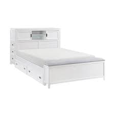 Full Bookcase Platform Bed with Hidden Desk, Stool and Storage Bench — Homelegance B2024WHBCFDASH1STAR (Sloane Collection)