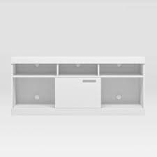 Combining fashion with function, this Techni Mobili TV stand is the ultimate focal point for your bedroom, living, or family room spaces. It is crafted with compressed wood and features a solid white finish that easily matches any theme and perfect for any decor. It includes one centered sliding door cabinet for storage space and two large open storage spaces to organize your media equipment and accessories. It also has three open shelves to keep DVDs, a cable box and sound system organized. Dimensions (Overall): 27 Inches (H) x 61 Inches (W) x 16 Inches (D). Weight: 67 Pounds. Holds up to: 55 Pounds. 2-year Limited Warranty. Ships in 1 box. Adult assembly required; tools provided.
