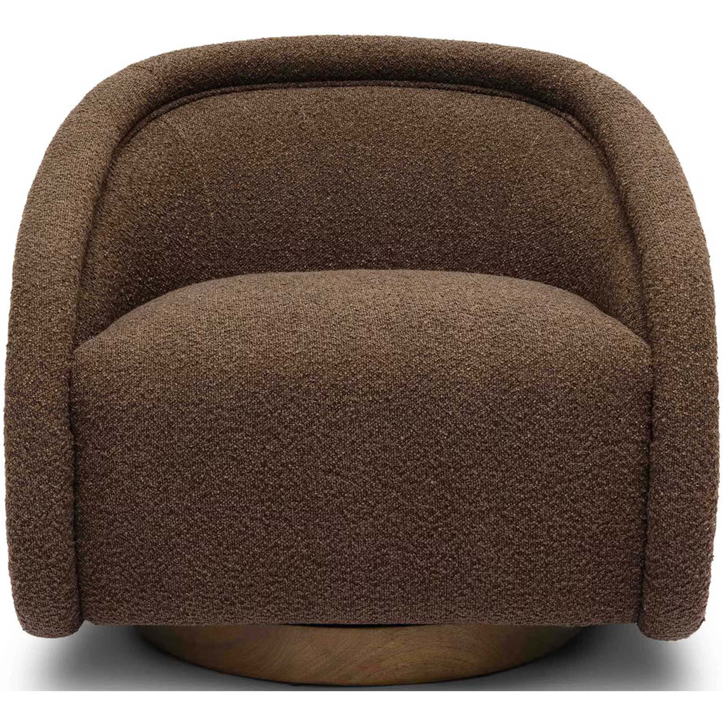 The Rory Swivel Chair combines style and comfort with a solid wood base and smooth swivel function. Its wrapped shelter arm and wide, deep seat offer a cozy retreat, perfect for pairing with your favorite pillow. The sensuous sloping back adds a touch of elegance, ensuring this chair stands out as a stunning focal point in any room. Ideal for both relaxing and showcasing your unique style, the Rory Swivel Chair elevates any space with its refined design and inviting presence.