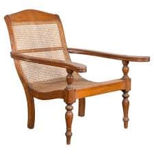 Dutch Colonial Indonesian Cane and Wood Plantation Chair with Extending Arms
