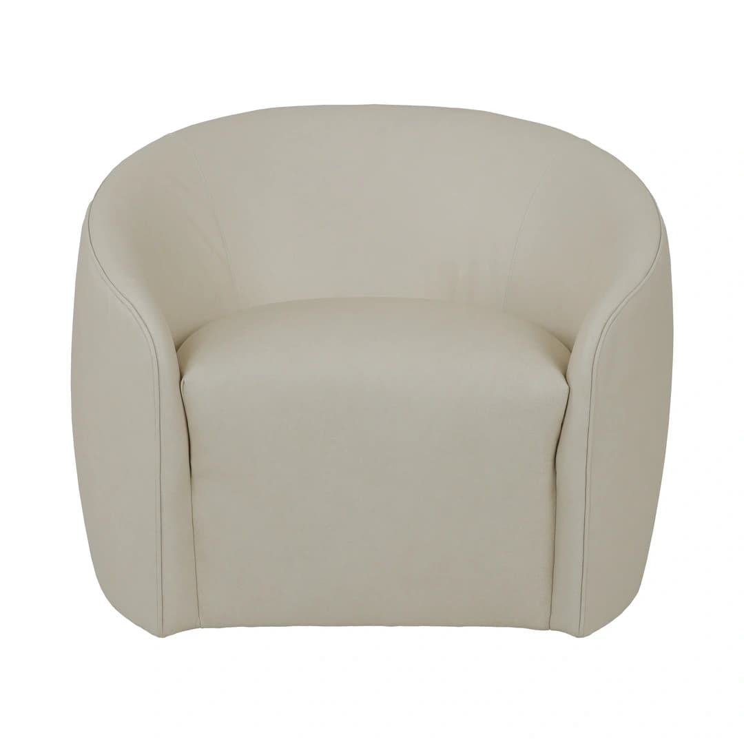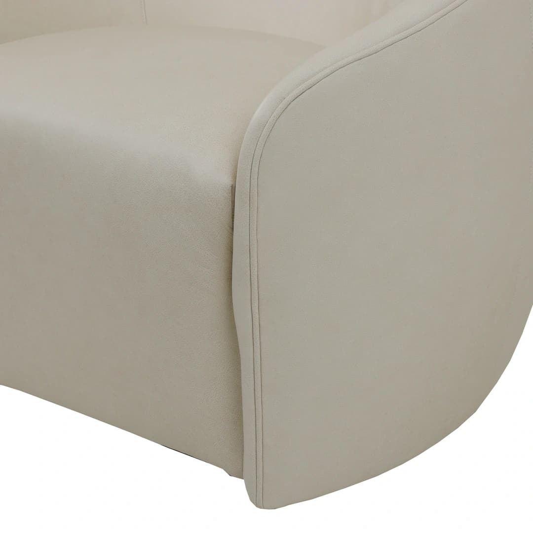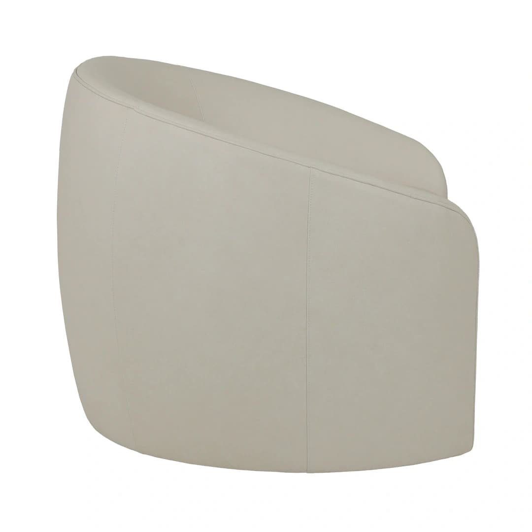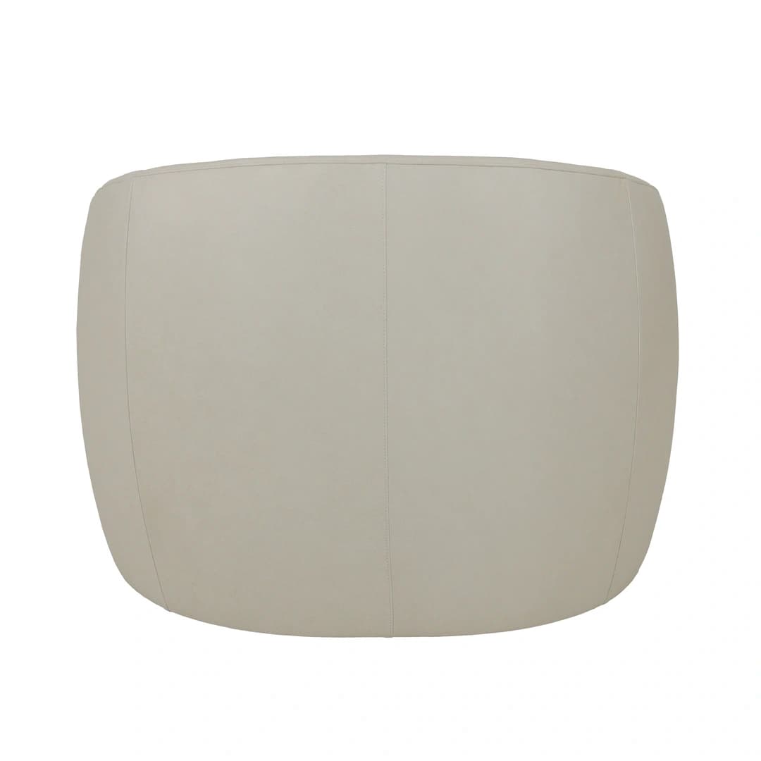 The Norwalk Furniture Rondo Cream Swivel Chair features a smooth, rounded design with curved back and arms for comfortable seating. Upholstered in soft, cream-colored 100% leather, this swivel chair combines classic style with practical functionality. Its durable leather material and elegant shape make it a versatile addition to any room.