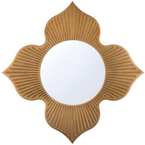 Tullos Four-Petal Floral Wall Mirror - Burnished Brass - Crystorama | Dressing Mirror, Vanity Mirror - Gold - Functional, Aesthetic