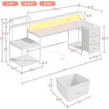 71 L Shaped Gaming Desk with LED Lights White Computer Desk ...