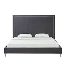 Gray Solid Wood King Upholstered Velvet Bed with Nailhead ...