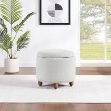 Lyra Storage Ottoman in Sherpa Parchment Fabric with Medium Oak Legs