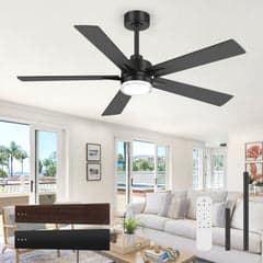 52" Modern Ceiling Fan with Light, Matte Black Finish, 5 Reversible Blades, Double Acrylic Lampshade with Integrated 18W LED (3 Color Temps & Memory), Quiet DC Motor, 6 Speeds with Timer, Remote, Forward/Reverse Airflow, Includes 5" & 10" Downrods