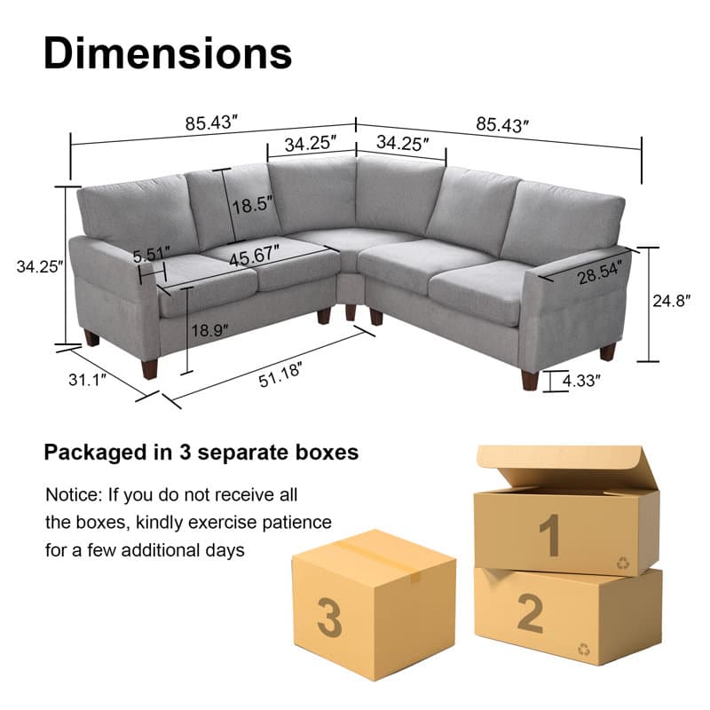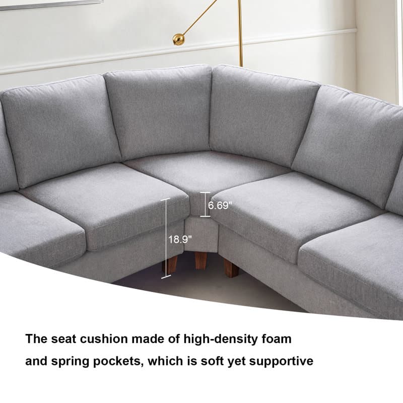 The sectional sofa offers exceptional comfort, featuring high-resilience foam and pocket springs that contour to your body, ensuring support whether you are sitting, or relaxing on the sofa. Not Included: Ottoman. Features include removable seat and back cushions, solid wood frame, linen-like polyester upholstery, 4.33" raised legs, and seating capacity for 5.