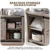 Eternal Farmhouse Elegance. With dimensions of (60" W x 15.75" D x 31.2" H), this 60" dressing table cabinet exudes a simple and elegant charm. The warm imitation oak finish combined with iron-toned metallic elements infuses the space with a touch of farmhouse charm. Paired with 2 classic sliding barn doors and 4 practical drawers, it blends modern style with farmhouse charm and adapts to various home decor styles. Features adjustable shelves, a 1" thick tabletop that holds up to 150 pounds, and multi-scenario adaptability (bedroom, TV cabinet, coffee bar, kitchen, entryway). Adult assembly required.