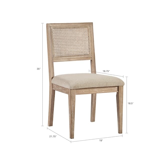 Bring natural warmth and versatile style to your home with the Kelly Dining Chair Set from INK+IVY. This set of two features handwoven rattan backs with a split-back design and solid wood frames in a hand-applied reclaimed finish for vintage charm. Upholstered padded seats with high-density foam and webbing provide lasting comfort. Clean lines and tapered legs blend effortlessly with coastal, farmhouse, transitional, Scandinavian interiors and more. Use them in the dining room, kitchen, home office, or as extra seating in the living room or bedroom. Assembly required.