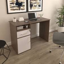 Escrivaninha Mesa Office com Gaveta e Armário Hall - Ipê/Branco