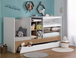 White & wood convertible baby bed combo Ecrin with Drawer ...