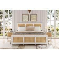 King Size Bed Frame with Headboard, Rattan Platform Bed ...