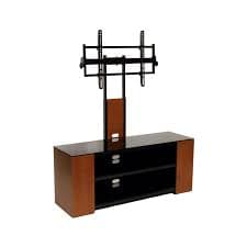 TransDeco Versatile TV Stand with Multimedia Storage Cabinet for Up to 90" TV's features: Fits most 40"- 90" plasma, LCD, LED, OLED TV's up to 150 lbs with mounting holes up to VESA 600 x 400 mm. Height adjustable TV mounting system (VESA compliant 600 x 400 mm). 15 degree pivot left or right and 12 degrees tilt up or down. Built in multimedia storage cabinet holds 150 DVD, 220 CD or any combination of DVD, CD, VHS, Blu-ray disc and video game. Constructed with heavy duty powder-coated scratch resistant steel and stylish engineered hardwood. Tempered safety glass shelves hold at least 6 audio video components and a center channel speaker or a sound bar. Cable management system to hide wires & cables. It comes with casters for easy AV components set up and mobility, adjustable feet also included. Contemporary design compliments any room decor. Easy to assemble.
