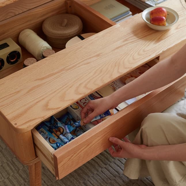 LOVMOR Elevating Center Table Low Table 100 Percent Solid Oak Wood Top Plate Desk Coffee Table Width 100 X Depth 60 X Height 45 Cm Study Desk Work From Home Easy To Assemble Natural Color Wood With Storage Shelf