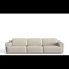 Iago Sofa by Natuzzi Italia. Contemporary low-seat sofa with memory-foam layer in the seat cushions. Features power headrest and power lumbar; reclining release is a hidden release inside the arm. Upholstery is 100% leather; color family shown as Tan / Beige (Status Dove). Manufacturer: Natuzzi Italia.