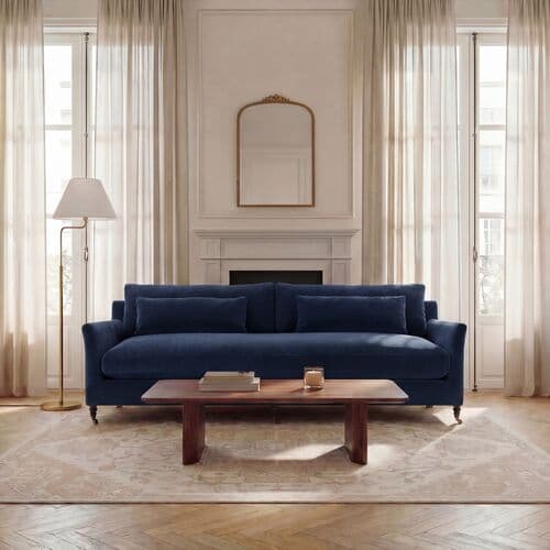 Montclair Velvet Bench-Seat Sofa | Couch, Settee - Blue - Comfortable, Durable | Couch, Sofa, Settee - Made in The USA